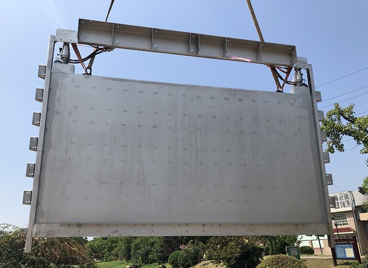 在排水管網雨水溢流前的水位控製係統中,通過堰門控製排水管內雨水的液麵高度,但堰門結構複雜。比如對於下開式堰門而言,其主要由堰板、堰框和油缸組合而成。堰板、堰框由不鏽鋼薄板折彎焊接而組成。